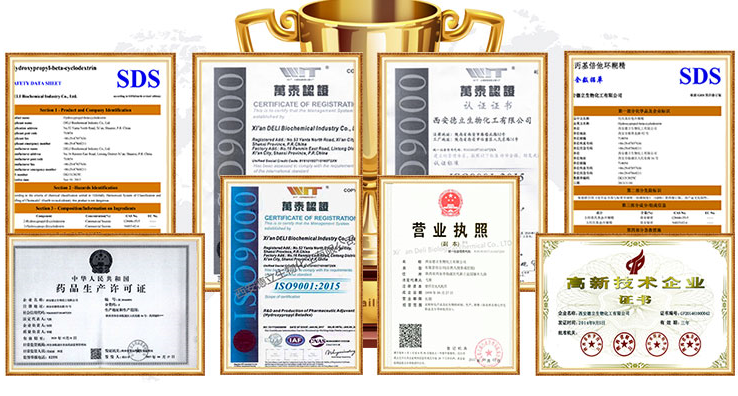 Xi'an Deli Biochemical Industry Co., Ltd ixtisaslaşan yüksək texnologiyalı bir müəssisədir. siklodekstrinlərin və onların törəmələrinin AR-GE, istehsalı və satışı. Biz sabit keyfiyyət və etibarlı xidmətlə bütün dünyada müştərilərə əczaçılıq köməkçi maddələri təqdim edirik.
