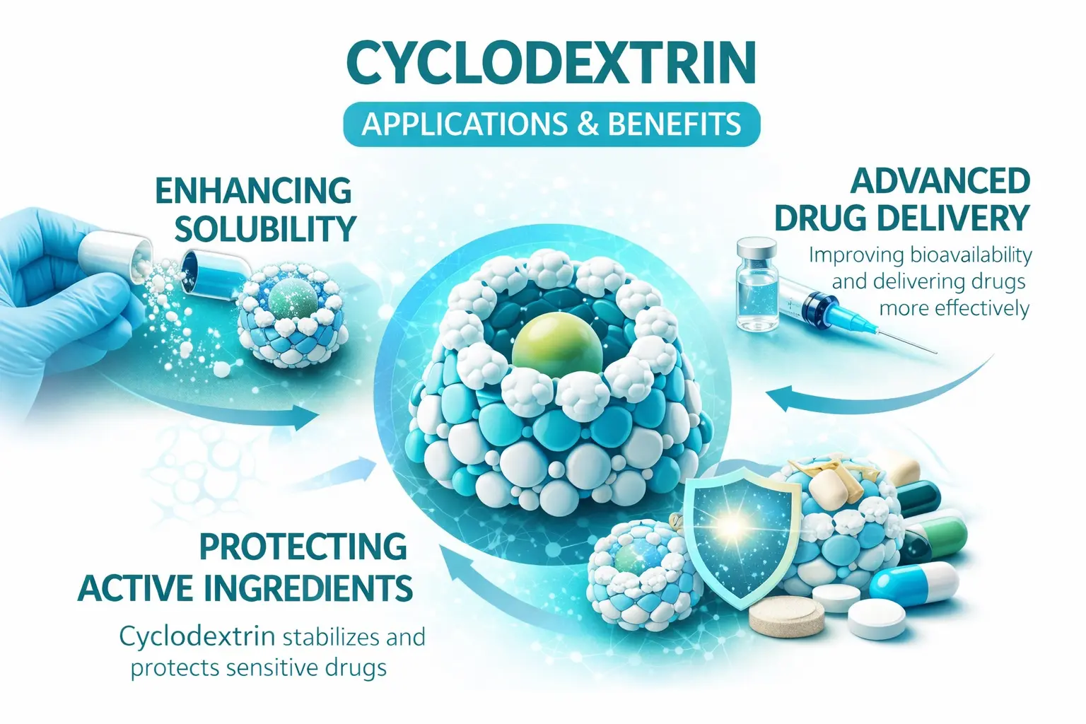 Siklodekstrin əczaçılıq inkişafı və formulasiya elminin sahəsini tamamilə dəyişdirən yeni növ təbii siklik oliqosakariddir. Bu unikal molekullar, həllolma qabiliyyətini, sabitliyi və bioavailliyi yaxşılaşdırmaq üçün müxtəlif birləşmələrlə daxilolma kompleksləri meydana gətirən konus formalı strukturda yerləşdirilmiş qlükoza vahidlərindən ibarətdir. 2026-cı ilə doğru irəlilədikcə, bu texnologiya dərmanların çatdırılması sistemlərini təkmilləşdirməyə davam edir və əczaçılıq alimlərinə misilsiz şanslar verir.